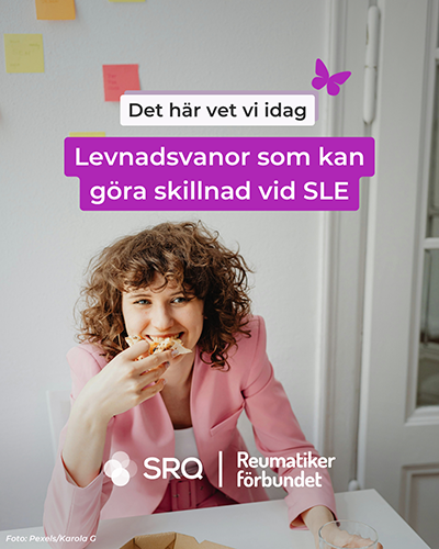 När det gäller kosten är kunskapsläget svagare – och mer forskning behövs. En studie har visat att så kallad medelhavskost (mycket grönsaker, frukt, fisk och olivolja – mindre kött och mejeriprodukter) kan ge lägre sjukdomsbörda, men fler och större studier behövs. Eftersom SLE ökar risken för hjärt- och kärlsjukdom är det klokt att undvika alltför mycket fet mat.